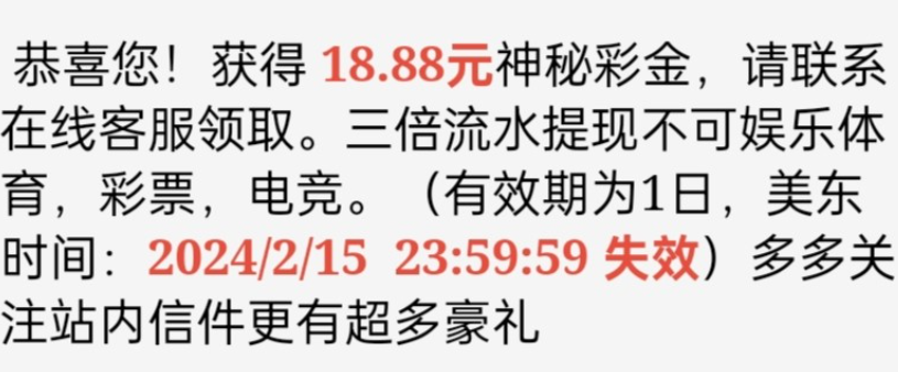 活动详情:有号的上号看看有没有在邮箱里面看看,有的话去找客服领取,三倍流水,不能玩彩票/体育/电竞,具体自行询问客服