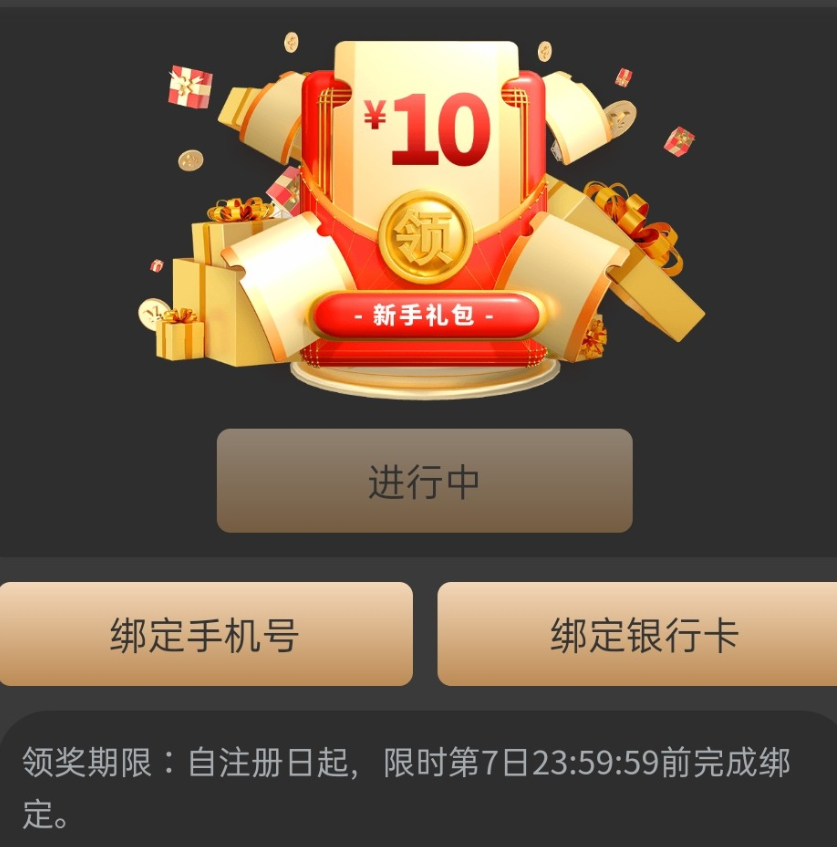 注册绑卡优惠里自助领取彩金